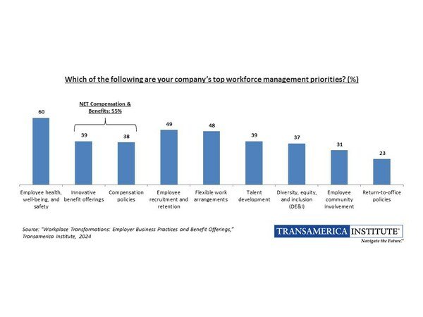 "Robotics and artificial intelligence may be revolutionizing the business world, but human workers are still critically needed. Many employers are feeling the pain of the prolonged labor crunch. Those with innovative and robust benefit offerings have an edge in the competition for talent," said Catherine Collinson, CEO and president of Transamerica Institute and TCRS. In fact, 37% of employers say labor shortages are negatively impacting their overall business and day-to-day operations, and almost half of employers (49%) indicate employee recruitment and retention are a top workforce management-related priority.